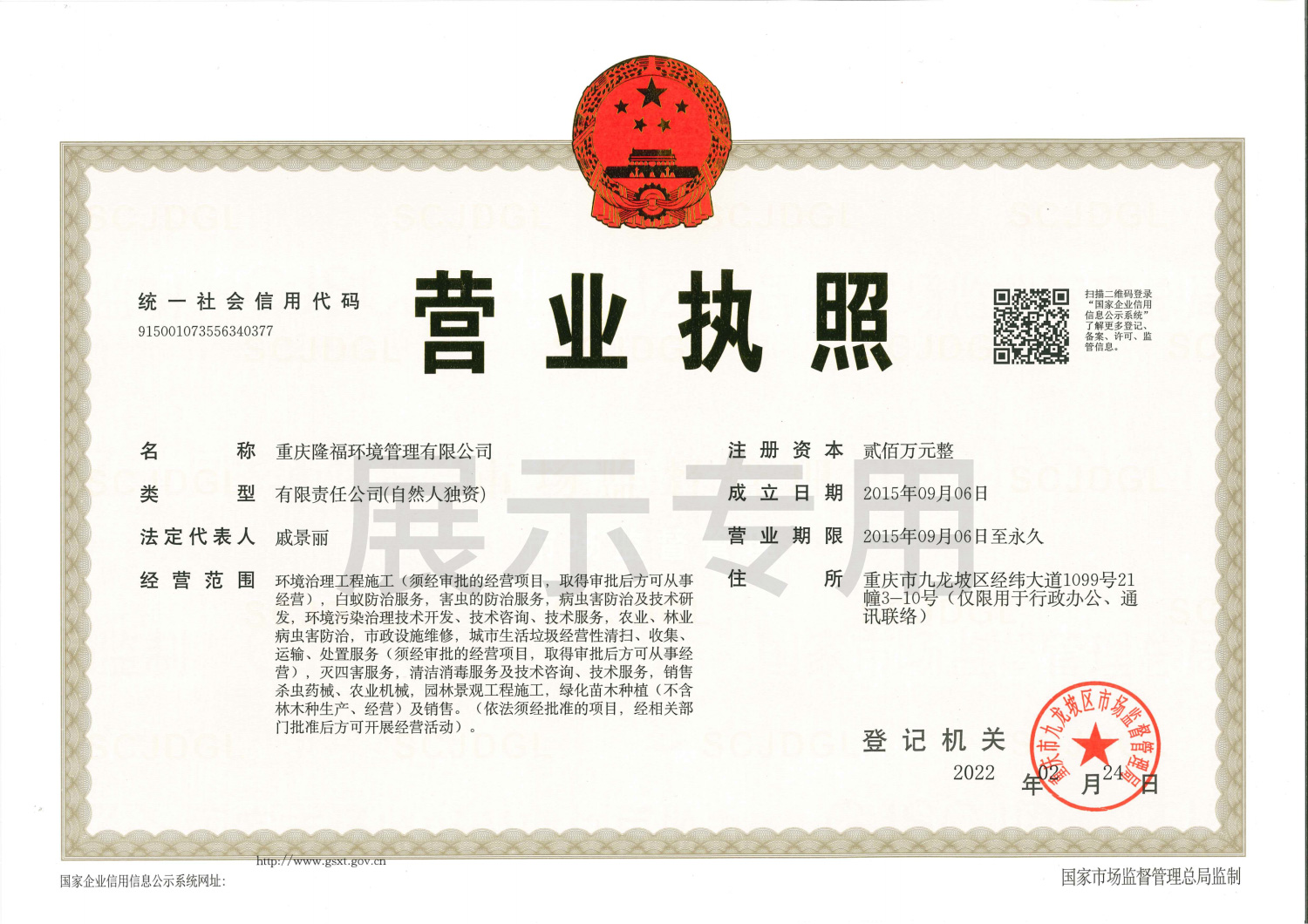 重慶隆福環(huán)境管理有限公司(以下簡(jiǎn)稱(chēng)“我司”)成立于2015年,另于2022年成立海南分公司。是一家從事專(zhuān)業(yè)白蟻防治、害蟲(chóng)消殺、消毒防疫、園林景觀(guān)施工、滅蟲(chóng)藥械銷(xiāo)售為一體的綜合性服務(wù)公司。